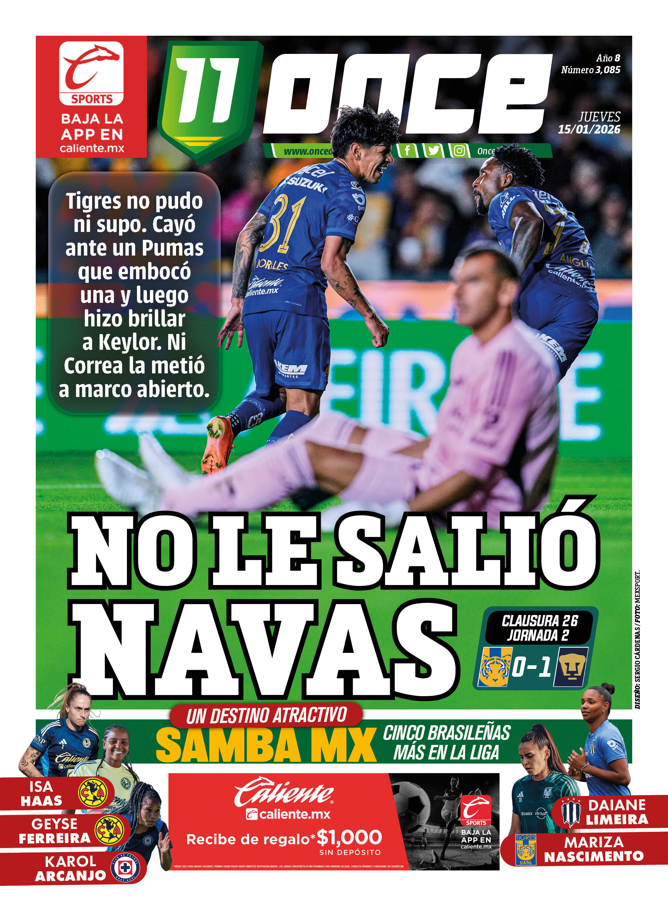 Tigres no pudo ni supo. Cayó ante un Pumas que embocó una y luego hizo brillar a Keylor. Ni Correa la metió a marco abierto.