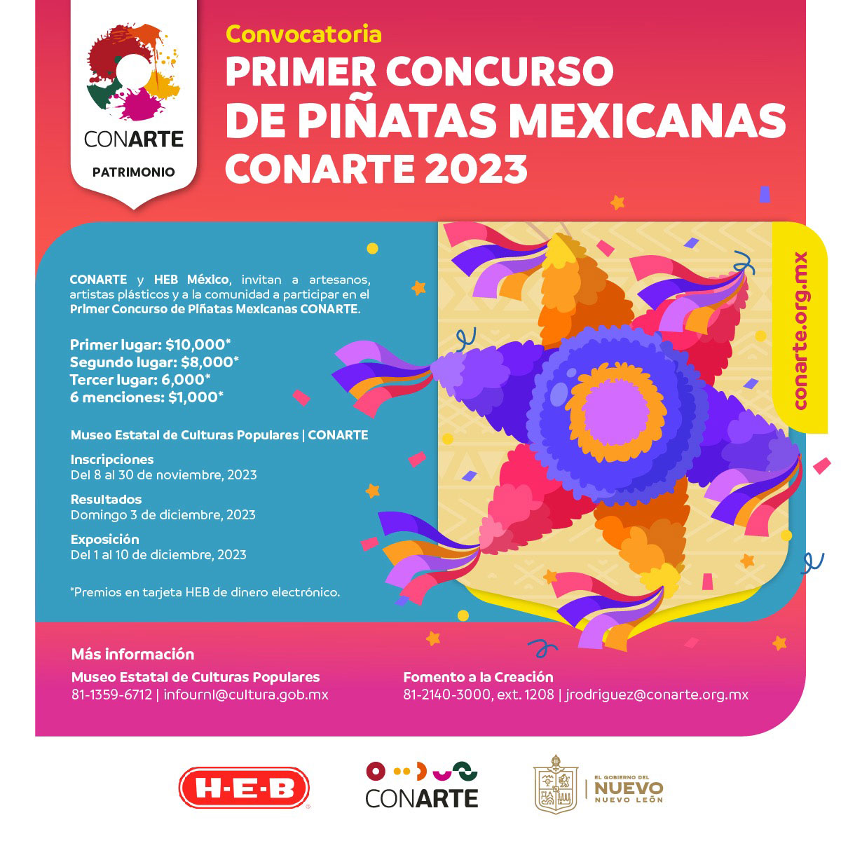 CONARTE te invita a participar en el primer concurso de piñatas mexicanas. Gracias a la colaboración de HEB México, los participantes podrán ganar dinero.
