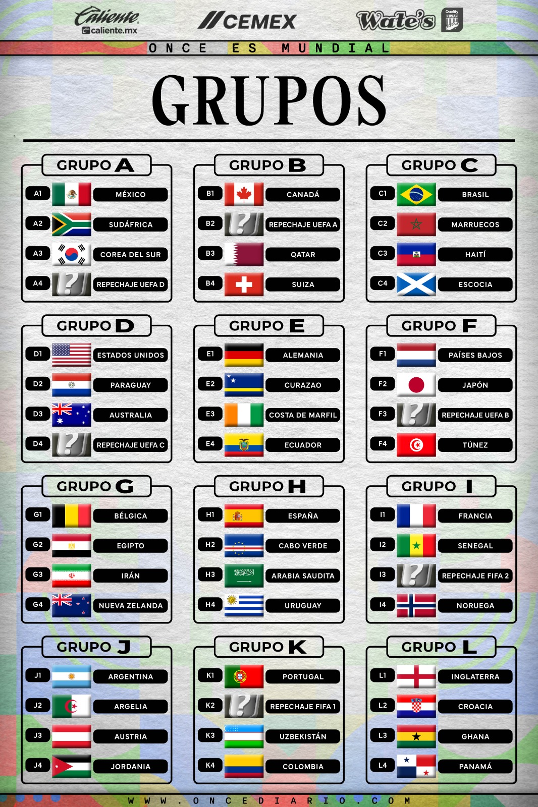 Ojo, también la FIFA dejó en claro que, cuando sea posible, los partidos podrían adaptarse a los diferentes husos horarios de las selecciones que correspondan para que su público pueda verlos. Además del anuncio del calendario, leyendas del futbol mundial acompañarán a Gianni Infantino, presidente de la institución responsable del Mundial, a analizar los diferentes cruces que quedaron definidos en el Centro John F. Kennedy de Washington, D.C.